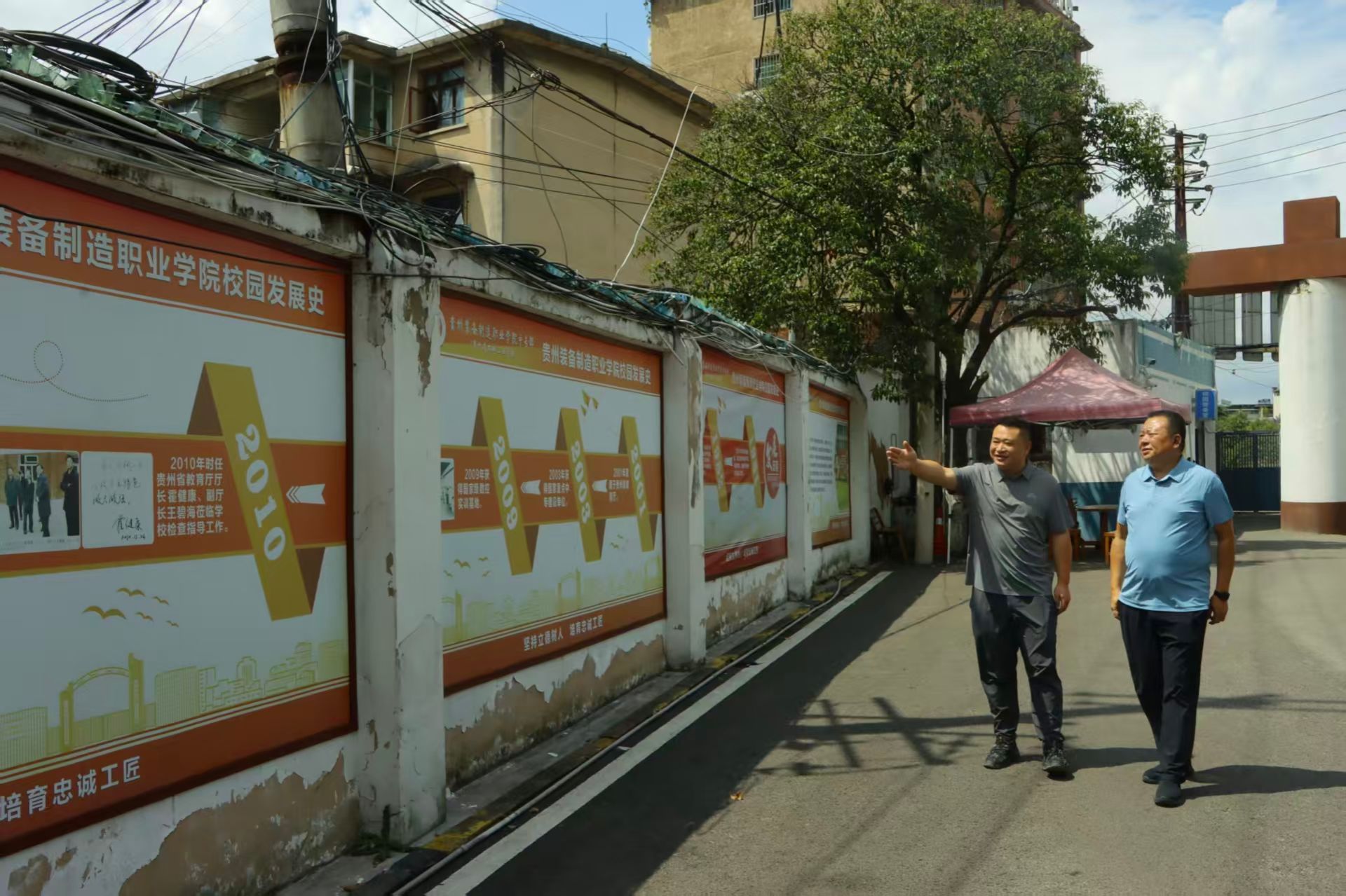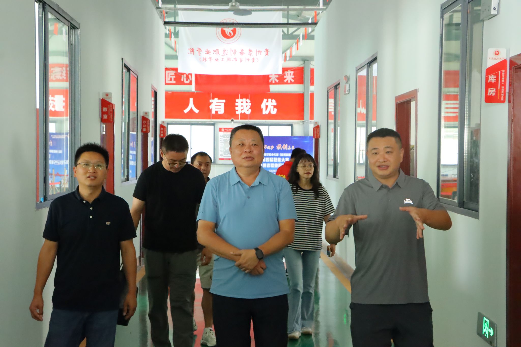 杨志宏书记一行首先来到校文化长廊,在中专部主要负责同志的讲解下,系统了解了贵州省机械工业学校自1981年建校以来的发展历程,特别是2017年学校整体升格为贵州装备制造职业学院,2019年成立中专部后实现的资源整合成果。杨志宏书记驻足观看中专部各专业开设简介、“技能大赛获奖榜”等板块,详细询问了当前中专部开设的数控技术应用、智能设备运行与维护、汽车制造与检测、计算机技术4个中职专业建设情况及现有学生培养模式等具体问题。