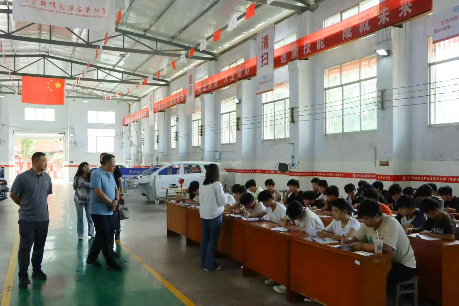 (图1 参观中专部工程实训室)